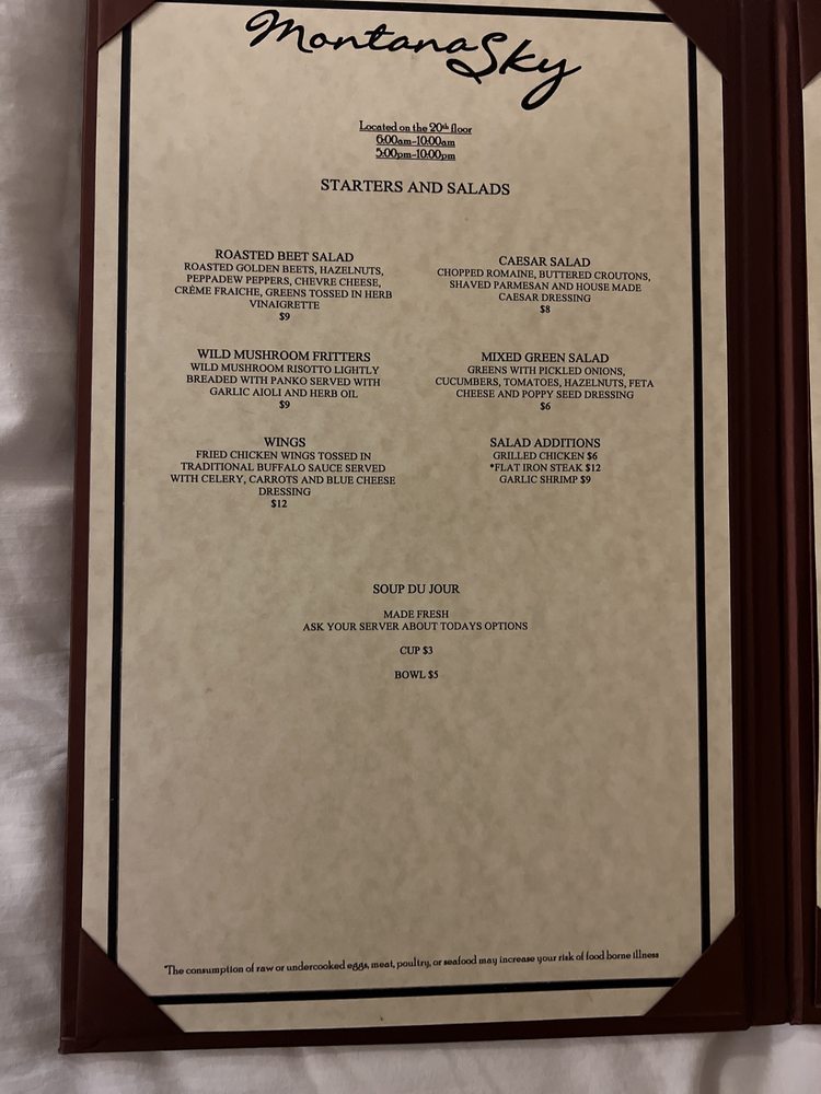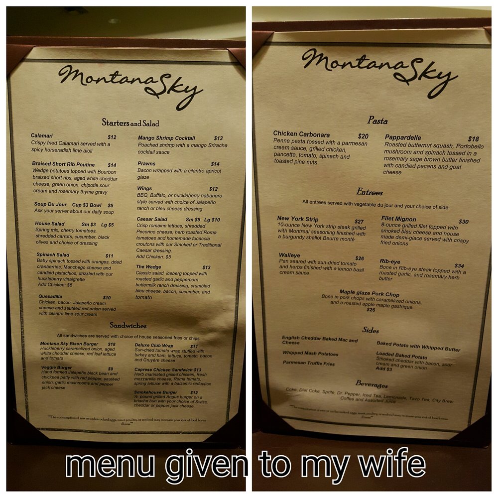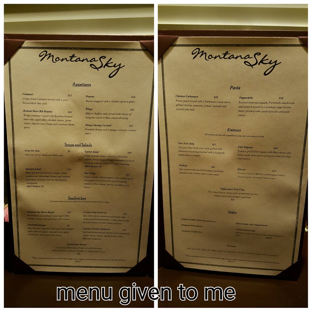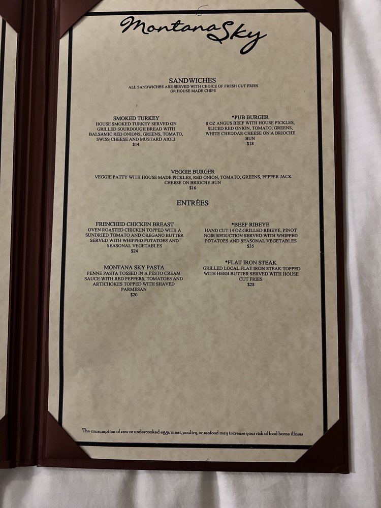 Introducing Montana Sky, a New American steakhouse located in Billings, Montana. This restaurant offers a range of amenities such as reservations, delivery, takeout, and even accepts cryptocurrency. With a quiet and casual atmosphere, it is perfect for groups and families, including furry friends as dogs are allowed. Montana Sky boasts stunning views from its 20th-floor location, providing a picturesque backdrop for delicious meals. Customers rave about the outstanding service, delectable food choices like omelettes and eggs benedict, and the breathtaking city lights view. Whether you're dining in for breakfast or brunch, Montana Sky promises a memorable experience with top-notch dishes and exceptional views. Don't miss out on this hidden gem in the heart of Billings.